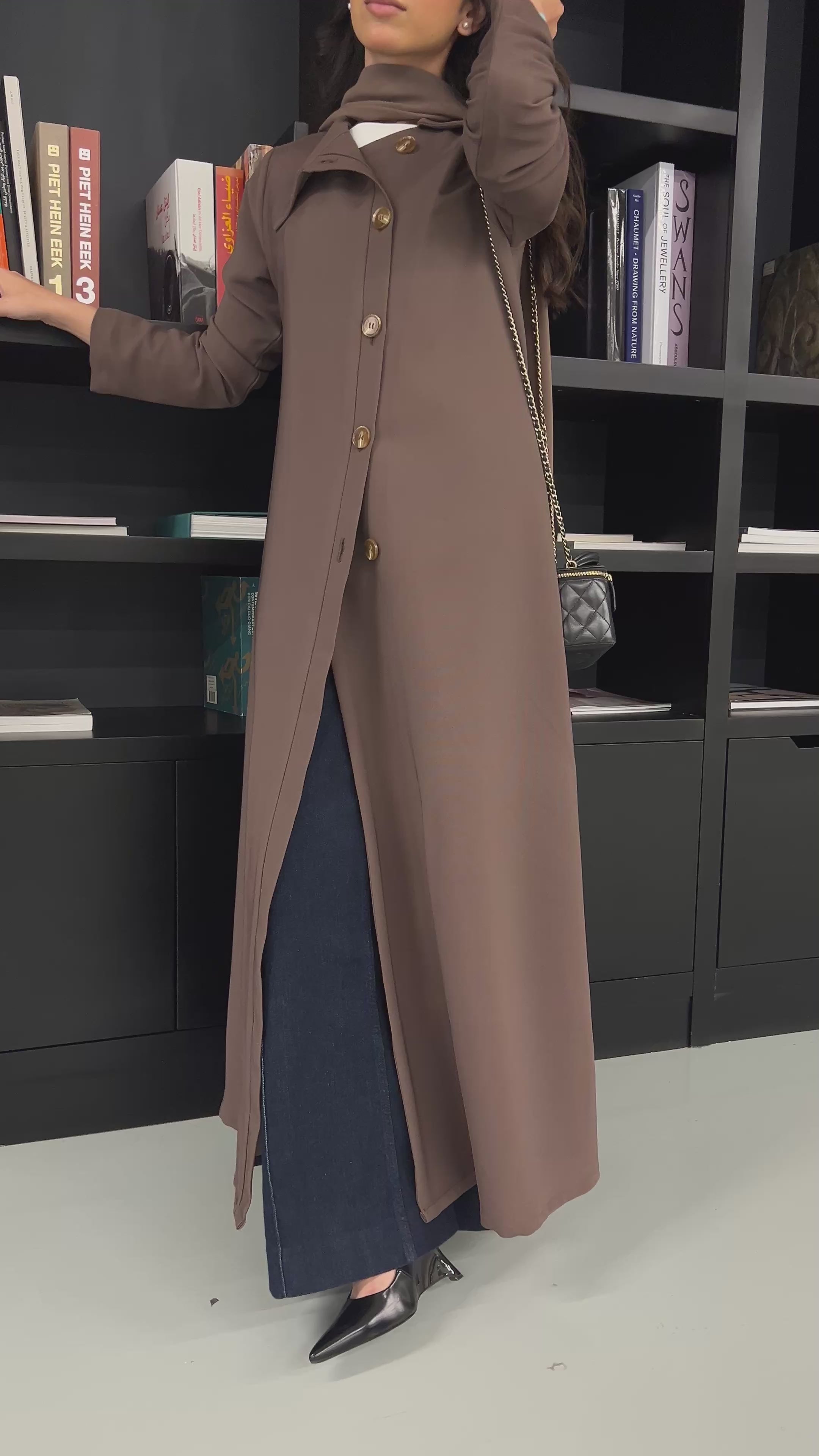 Effortless and made to move with you. Designed in soft Italian crepe with signature TONED buttons and wrap detailing, this abaya is your go-to for work, daily errands, or a quick gym stop. Finished with a matching sheila for a complete look