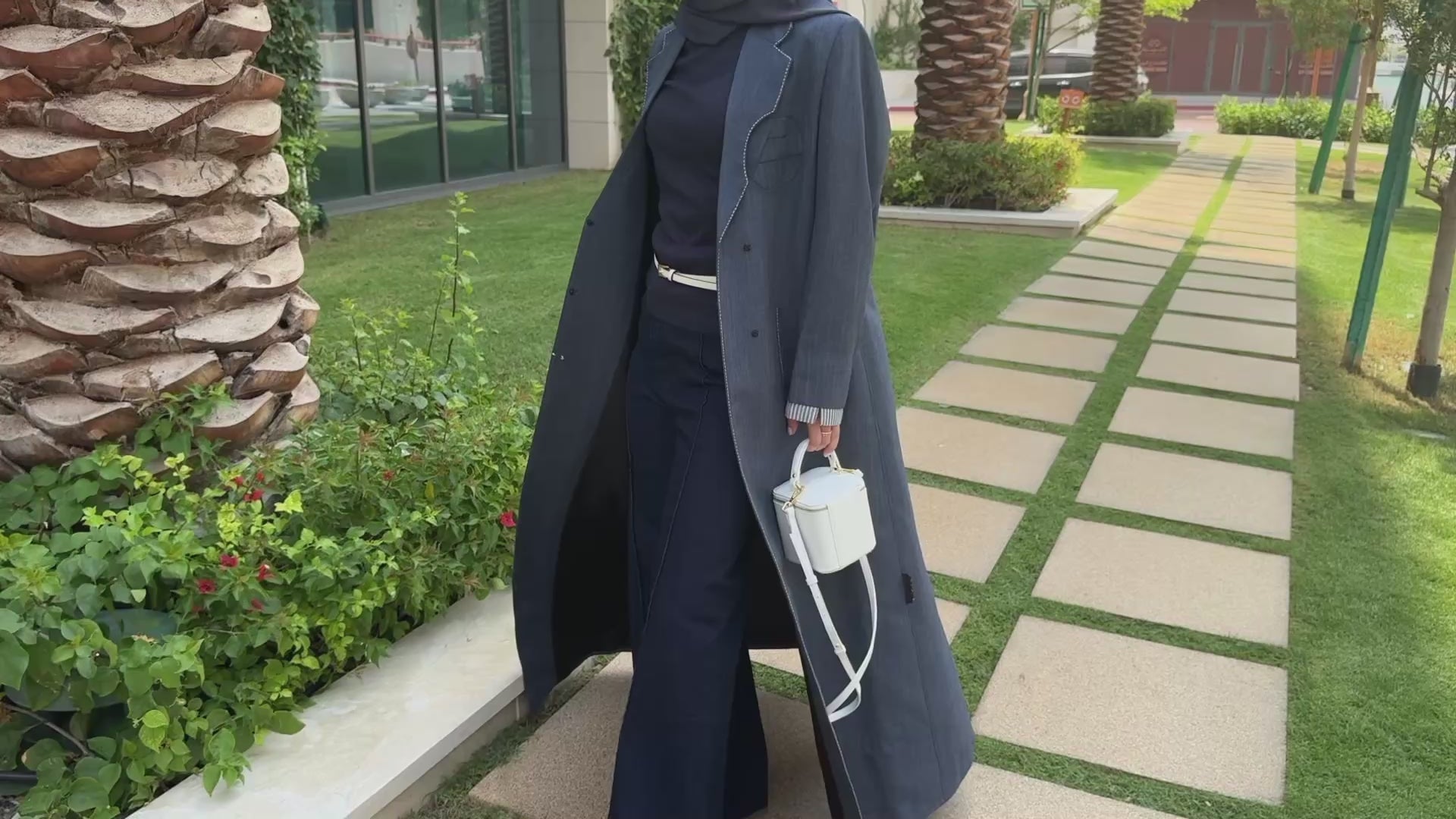 A denim-toned statement piece featuring Toned’s signature circle pocket and subtle summer stripes on the sleeves. Comes with a matching chiffon sheila in soft blue for the woman who moves with quiet confidence.