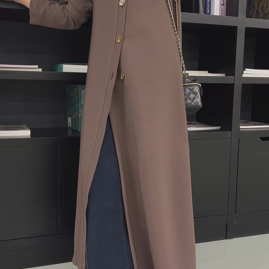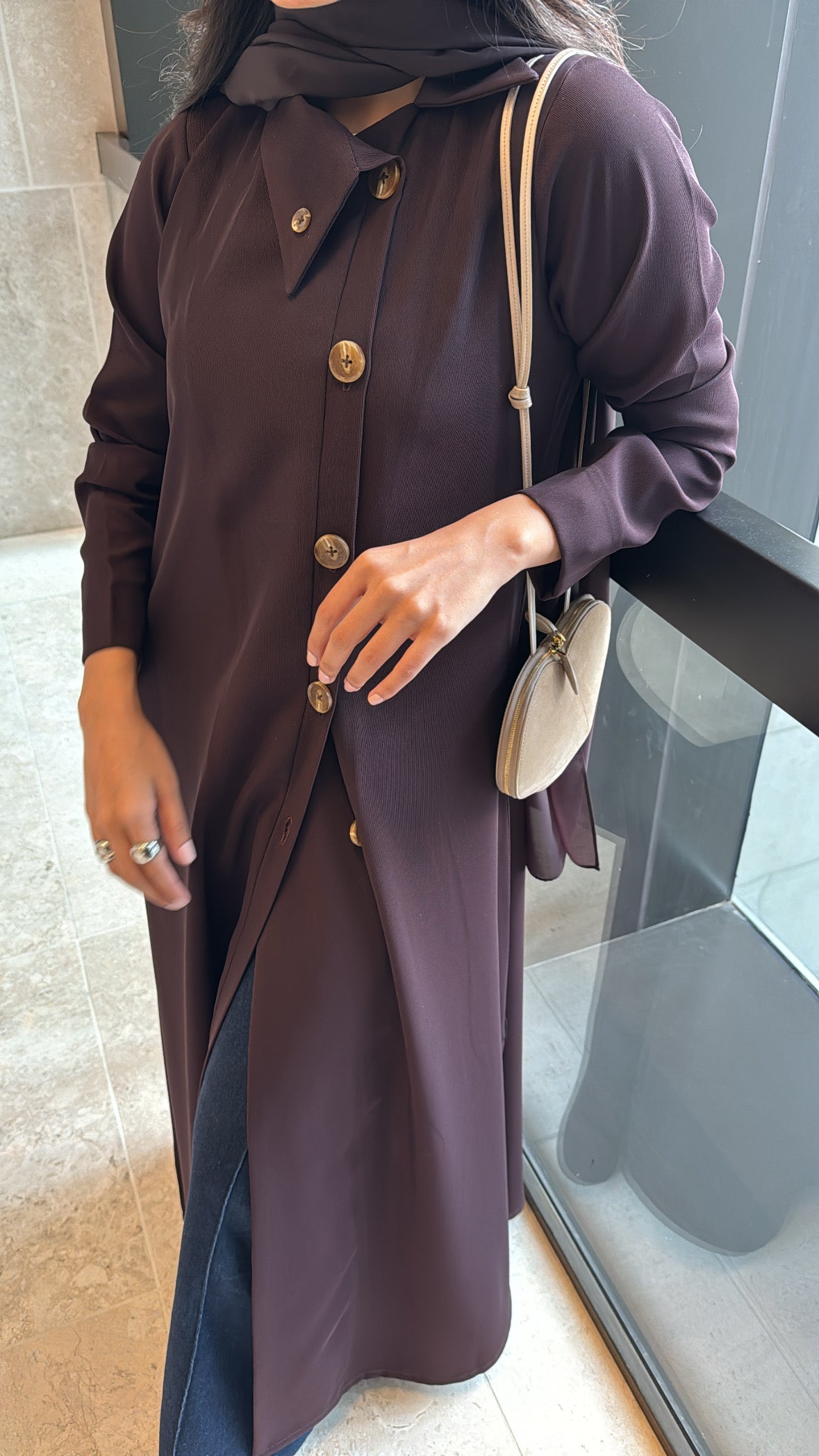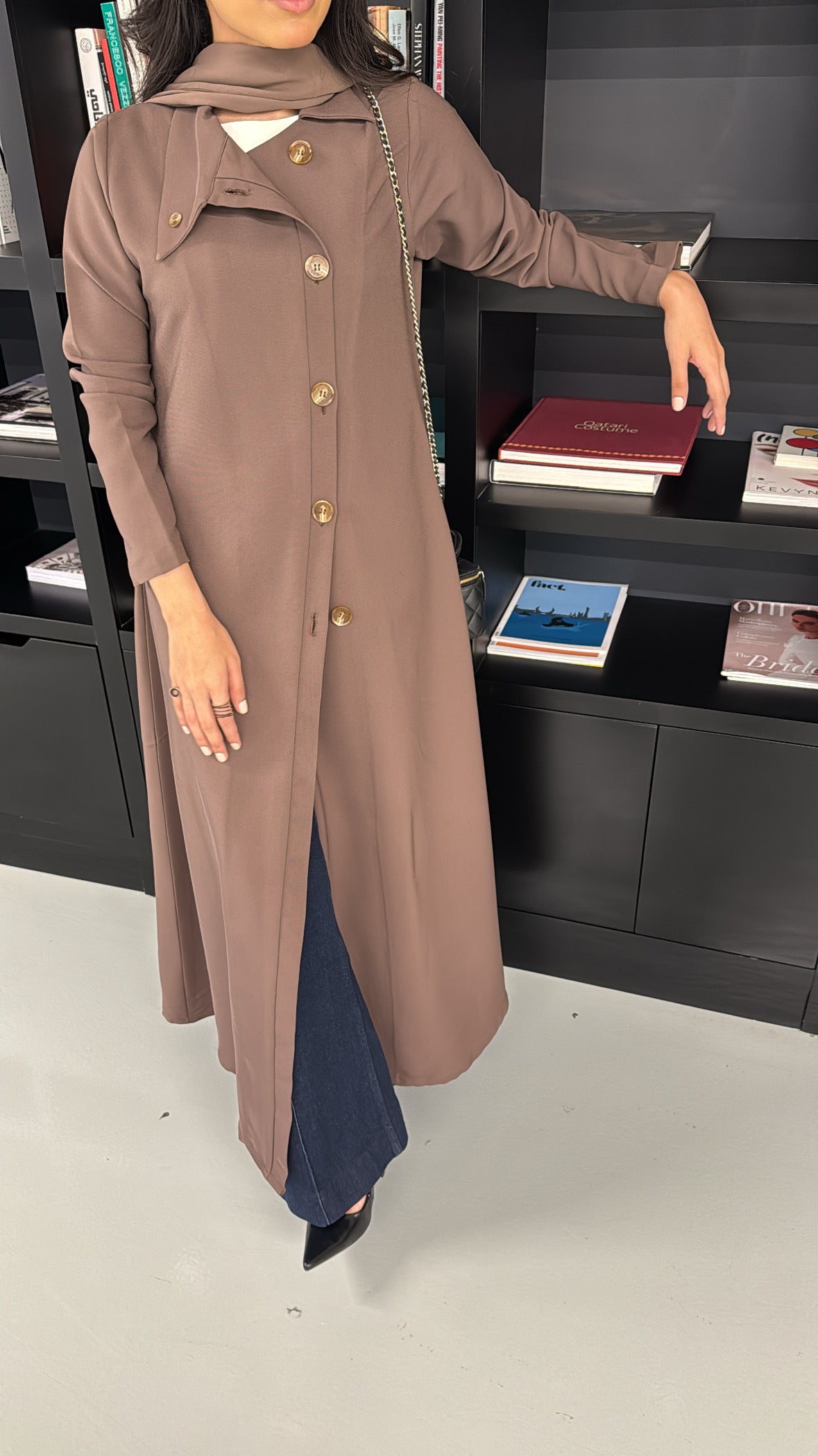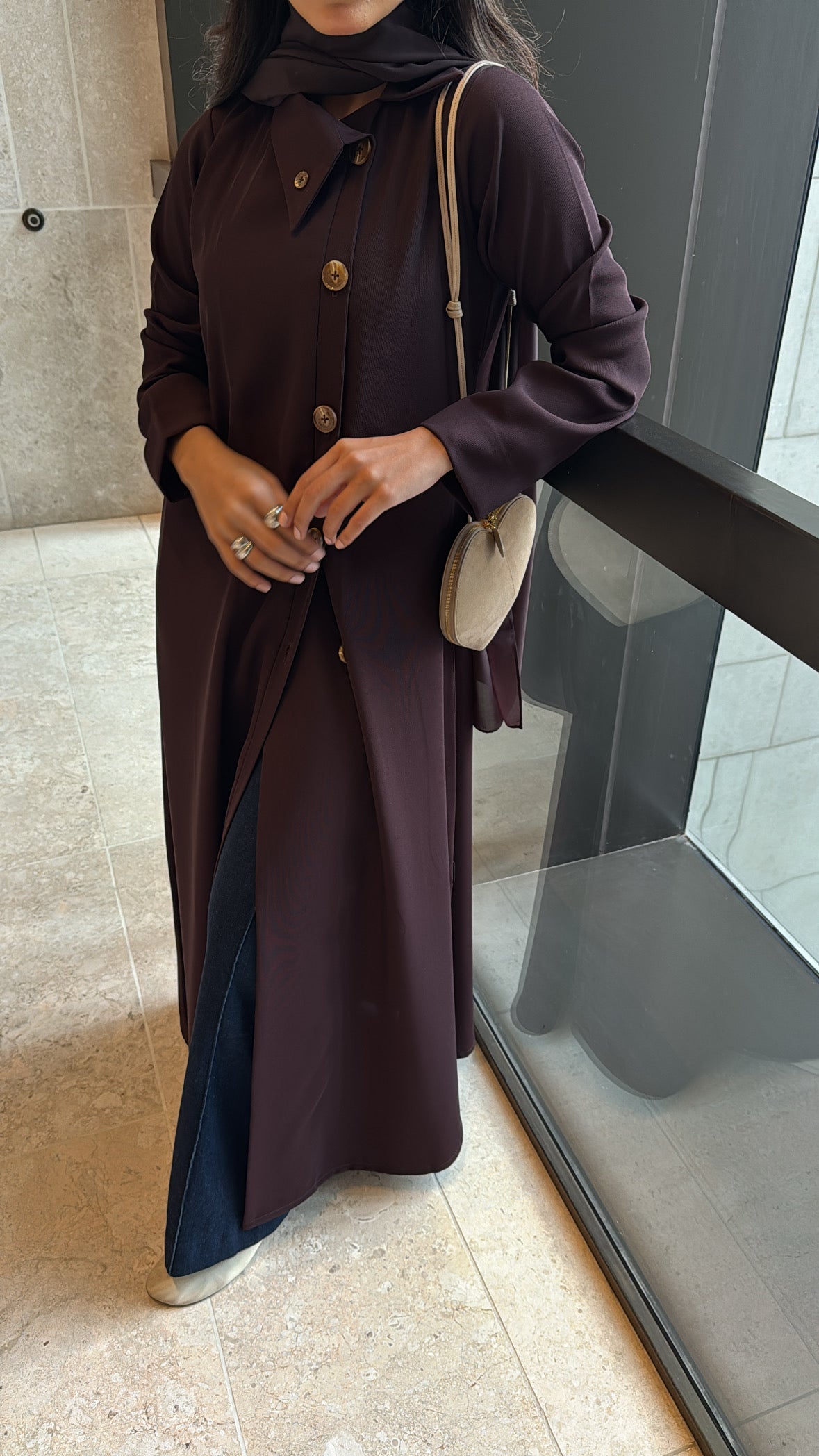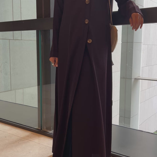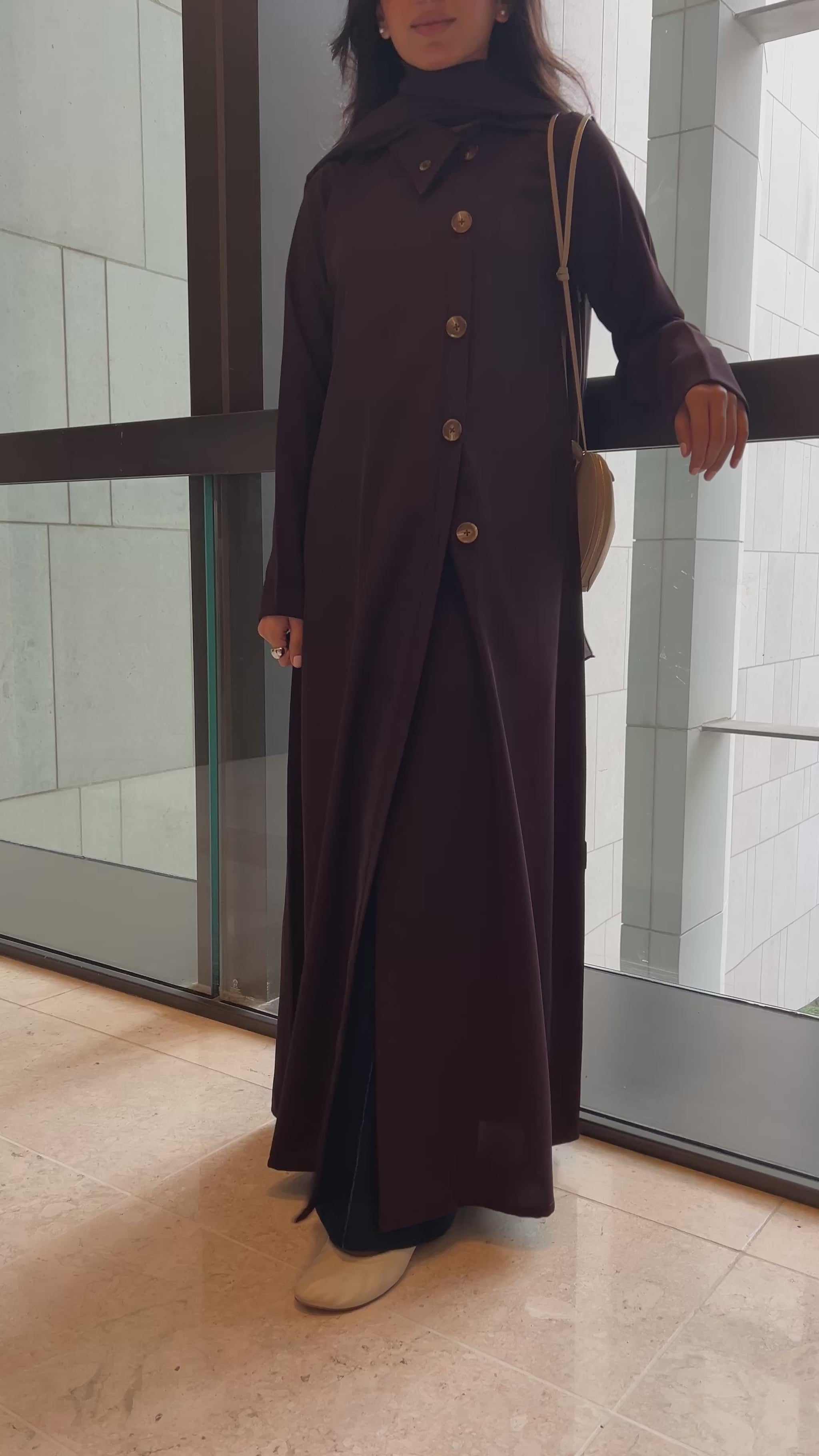 Effortless and made to move with you. Designed in soft Italian crepe with signature TONED buttons and wrap detailing, this abaya is your go-to for work, daily errands, or a quick gym stop. Finished with a matching sheila for a complete look